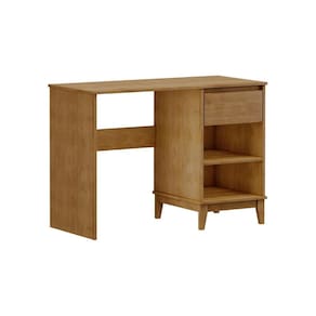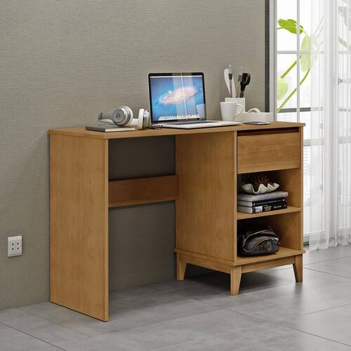 Escrivaninha Mesa Escritório Quarto Estudo Uma Gaveta Dois Nichos Madeira Maciça Estilo Boho Fazenda Rústico Contemporâneo Marrom