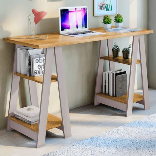 Mesa Escrivaninha Montana 4 Prateleiras Cinamomo/Off White - Pnr Móveis - Marrom