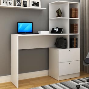 Organização Garantida: 02 Gavetas com corrediças metálicas e 05 Nichos para acomodar livros, pastas e objetos.