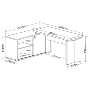 Dimensões da Mesa Escrivaninha para Escritório em L com Porta Stuart: