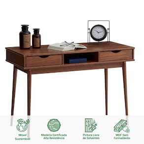 A Mesa Escrivaninha Stefano feita com madeira maciça é um móvel sofisticado e prático que adicionará charme e funcionalidade ao seu espaço de trabalho ou escritório em casa. Ideal para quem procura um ambiente de trabalho organizado, compacto e moderno.