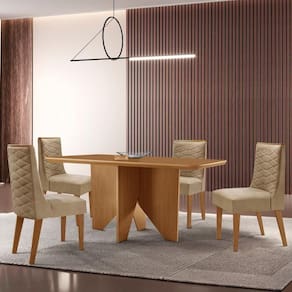 Mesa Evora 120 Mdf Canto Copo E Com 4 Cadeiras Safira Turim 07-naturalle-naturalle - Bege
