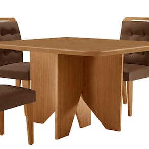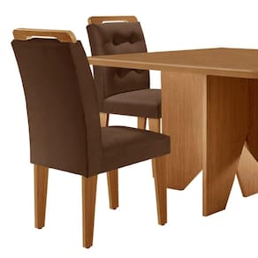 Mesa Evora 90cm Mdf Canto Copo E Com 4 Cadeiras Carol Veludo Marrom/naturalle/naturalle