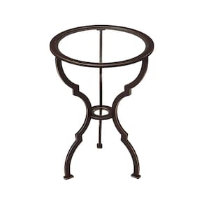 - Uma fantástica base de ampulheta fica arabesca, mas mantém as linhas simples e abertas. O esticador de anel de vedação e o topo de vidro redondo mantêm esta mesa aberta e arejada. Moldura de ferro durável com acabamento preto.