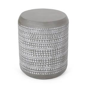 Mesa final externa Benjara, concreto sintético cinza redondo de 16 polegadas com padrão branco