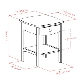 - Aparência curva e polida. O design curvo e suave combina bem com qualquer estilo de decoração de quarto. Limpe com um pano úmido. Inclui uma gaveta e prateleira.