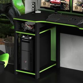 Mesa Gamer 136cm com 2 Prateleiras e Porta CPU Preto/Verde -