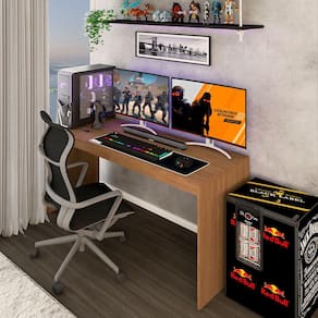 O(a) Mesa Gamer Battlestation Avelã/Avelã Tx - Loja é produzido em MDP na escala de brilho Fosco, e possui um grau de dificuldade de montagem: Médio.