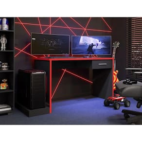 Mesa Gamer com Plataforma Versátil Ventelle Preto Vermelho