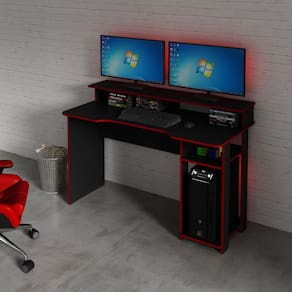 Mesa Gamer com Porta CPU 136cm Preto/Vermelho -