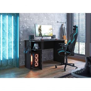 Mesa Gamer Com Suporte De Zalie Preto A Mesa Gamer veio trazer mais conforto para suas horas de jogatina e diversão.