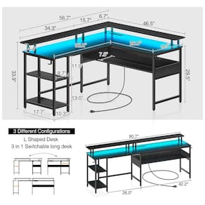 A Mesa em L com luzes LED é a escolha perfeita para quem busca versatilidade e funcionalidade. Equipado com luzes LED que oferecem 20 cores e 21 modos dinâmicos, o controle remoto de 17 teclas permite personalizar a iluminação do ambiente conforme suas preferências. A função de memória das luzes LED mantém a configuração no último modo selecionado quando a mesa é ligada.