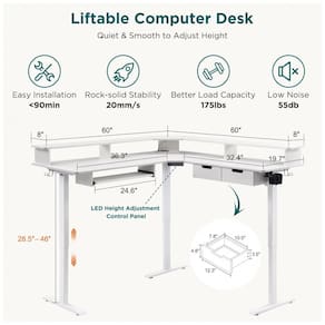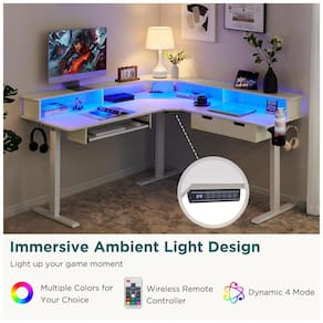 A Mesa Elétrica em L RedLemon de 152 cm oferece ajuste de altura motorizado de 72,4 cm a 116,8 cm, com 4 posições de memória programáveis para configuração rápida via painel de controle. Seu design em formato L proporciona superfície de trabalho de 152 cm x 152 cm, ideal para setups de escritório, estudo ou gaming, com prateleira para monitor posicionada a 38,1 cm de altura para otimização ergonômica de ângulo e distância visual.