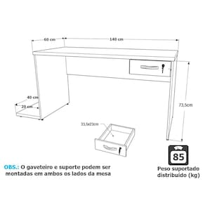 Itens Inclusos: 1 Escrivaninha + 1 Manual de Montagem + 1 Kit Ferragens