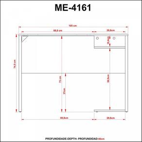 Criatividade, conforto e modernidade são as principais características da Mesa Gamer ME4161 da Tecnomobili. Desenvolvida para entrega não só o conforto na usabilidade, mas muita praticidade para diversas horas de uso. Modelo anatômico e surpreendente em sua cor, sua proposta é ousada e é a melhor parceira para a hora do jogo e coleção de vitorias entre uma partida e outra. Possui usinagem anatômica para um melhor desempenho, nicho aberto para ventilação da CPU e espaço para teclado e monitor. Material em MDP e acabamento em BP Semi-Fosco. Acabamento da Prateleira: Finish Foil Ambiente Principal: Escritório Complexidade da Montagem: Baixa: pode ser montado por uma pessoa sozinha Cor: Preto Cor do Produto: Preto Cor Interna: Preto Escala de Brilho: Semi-Fosco Escala de Brilho da Prateleira: Semi-Fosco Formato: Retangular Informações Complementares: 15 Kg tampo e 10 kg prateleira Itens Inclusos: 1 Mesa, Manual de Montagem e Kit ferragem. Linha ou Coleção: Escritório Manual de Montagem e Instalação: https://cdn2.madeiramadeira.com.br/atributo/tecno-mobili/835246-me-4161.pdf Material da Prateleira: MDP Material Principal: MDP Necessita Montagem: Sim Origem do Produto: Nacional Peso: 17,3 kg Peso Máximo por Prateleira: 10 kg Possui Passa Cabos: Não Possui Pés: Não Possui Porta Objetos: Não Possui Portas: Não Possui Prateleiras: 02 Possui suporte para CPU: Sim Possui Suporte para Teclado: Não Recomendações de Uso, Manutenção e Limpeza: Para uma limpeza mais efetiva, utilizar apenas pano macio umedecido e sabão neutro. Não utilizar produtos abrasivos. Sapatas Niveladoras: Sim Sistema de Montagem: Sim. Aconselhamos que a montagem seja feita por um profissional. Forre o chão com o próprio papelão de nossas embalagens para evitar danos e arranhões e monte o móvel deitado de costas para cima. Após montado não expor o móvel a fonte de calor ou umidade. Suporta Até (kg): 15 kg