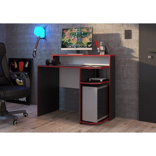 Você vai se apaixonar por essa charmosa e prática Escrivaninha Gamer Power fabricado pela Art In Móveis. Perfeita para a sua diversão, é ergonômica e otimiza os espaços para seus equipamentos. Este produto foi Produzido em excelente material MDP 15 mm e com acabamento em BP, que garante maior resistência e qualidade em seu móvel. A essência de criar soluções que trazem mais conforto sua vida é o grande diferencial dos produtos Art In Móveis. Cada nova ideia é uma mistura de criatividade, funcionalidade e muita dedicação. Produto Montado: Sim Acabamento da Prateleira: Finish Foil Acompanha Manual de Instalação: Sim Ambiente Principal: Escritório codigo_ean: 7909903163207 Complexidade da Montagem: Baixa: pode ser montado por uma pessoa sozinha Cor: Preto Cor do Produto: Preto Dobrável: Não Escala de Brilho: Semi-Brilho Escala de Brilho da Prateleira: Semi-Brilho Espessura do Tampo: 15 mm Formato: Retangular Itens Inclusos: 1 Escrivaninha, Kit Ferragens e Manual de Montagem Manual de Montagem e Instalação: https://product-hub-prd.madeiramadeira.com.br/798824/documents/22b91def-c02e-4a38-896a-91f80d9c0867ontagemmg10007899766513212.pdf Material da Estrutura: MDP Material da Prateleira: MDP Material do Tampo: MDP Material Principal: MDP Montagem Flex: Não, só é possível a montagem do produto conforme imagem do anúncio. Necessita Montagem: Sim Origem do Produto: Nacional Peso: 19,2 kg Peso Máximo por Prateleira: 5 kg Possui Passa Cabos: Não Possui Porta Objetos: Não Possui Portas: Não Possui suporte para CPU: Sim Possui Suporte para Teclado: Não Quantidade de Nichos: 01 Recomendações de Uso, Manutenção e Limpeza: Deve ser feita com pano macio e seco ou levemente umedecido com água e sabão neutro. Não devem ser utilizados abrasivos como palha de aço e objetos cortantes. Sapatas Niveladoras: Não Sistema de Montagem: Parafusos, Cavilhas e Minifix. Suporta Até (kg): 35 kg