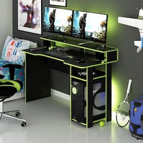 A ME4153 é projetada com tampo em usinagem anatômica, proporcionando mais conforto durante as partidas. Possui espaço para até dois monitores, para você não perder nenhum detalhe. A área da CPU é vazada, que permite uma ventilação correta sem comprometer o funcionamento do seu PC. Ainda possui prateleira para acomodar objetos de decoração. Seu grande diferencial está na posição dos monitores, um pouco mais elevada em relação às outras mesas da mesma linha, além disso, tem espaço dedicado para guardar os seus games e espaço para acomodar objetos de decoração.