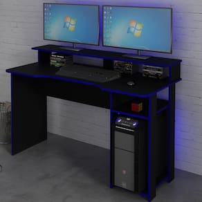 O(a) Mesa Gamer Ideal para 2 Monitores Me4153 Preto/Azul - Tecno Mobili é produzido em MDP na escala de brilho Fosco, e possui um grau de dificuldade de montagem: Fácil.