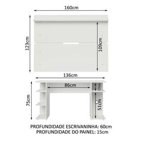 Itens inclusos: - Uma (1) Mesa Gamer com 75 cm de altura, 136 cm de largura e 60 cm de profundidade - Um (1) Painel com 123 cm de altura, 160 cm de largura e 15 cm de profundidade