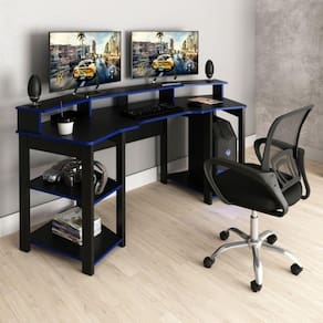 1x Mesa Gamer Me4167 Preto/Azul Largura: 186,6 cm Altura: 89,5 cm Peso: 32 kg Profundidade: 70 cm Necessita Montagem: Sim