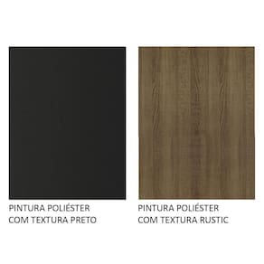 O acabamento da mesa é preto e o do painel é no padrão amadeirado Rustic. O processo é feito em Pintura Poliéster ecológica com 7 camadas de proteção.