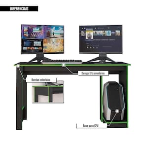 A Mesa Para Computador Gamer vai te surpreender com seu design e funcionalidade que somente ela pode apresentar. A Mesa Gamer possui Base para CPU deixando seu setup muito mais organizado. Feito em MDP BP possui maior resistência e durabilidade ao móvel.