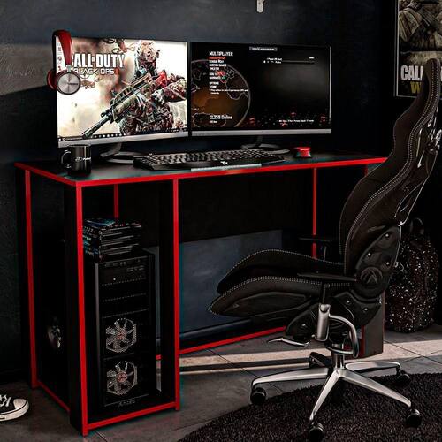 Mesa Gamer Singapura Em Mdp Para 2 Monitores Politorno Preto/vermelho