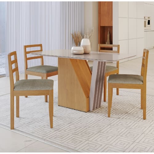 Mesa Harpa 1,20 4 Cadeiras Jade Linho JCM Cinamomo/Off - Marrom