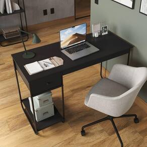 Com gaveta para otimizar o armazenamento e uma gaveta prática para manter seus itens essenciais sempre por perto, esta escrivaninha oferece tudo que você precisa para trabalhar ou estudar com eficiência e conforto.
