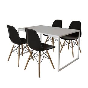 Mesa Industrial Base Ferro Branco 137x90 Tampo Branco 4 Cadeiraseiffel Madeira Assento Preto