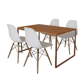 Mesa Industrial Base Ferro Cobre Tampo 137x90 Canela 4 Cadeiras Eames Madeira Assento Branco - Marrom
