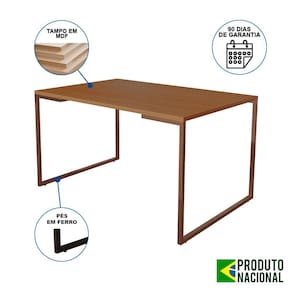 Mesa Industrial Base Ferro Cobre Tampo 137x90 Canela 4 Cadeiras Eames Madeira Assento BrancoA mesa de jantar é um dos poucos móveis que efetivamente reúne a família para saborear um bom prato ao lado das pessoas que mais ama. E para garantir que o seu ambiente fique impecável, conte com a Mesa De Jantar Industrial e as Cadeiras Eames. Os modelos buscam inspiração no estilo industrial, mas, ao mesmo tempo, abre um leque de possibilidades na hora de colocar a criatividade em prática e fazer as melhores harmonizações para a sua sala de jantar ou cozinha. Distribuindo sofisticação ao cômodo, você ainda pode combiná-la com as outras peças da Linha Industrial para conquistar um visual completo.Tipo: Mesa de Jantar Retangular com 4 CadeirasModelo: Mesa Industrial e Cadeiras EamesInformações MesaCor Base: Cobre Cor Tampo: Canela Altura: 78cmLargura: 137cmComprimento: 90cmInformações Cadeira:Pés: Madeira Cor Assento: Branco Altura: 85cmLargura: 47cmComprimento: 50cmATENÇÃOIMAGENS MERAMENTE ILUSTRATIVAS REALIZADO EDIÇÃO, PODENDO HAVER UMA PEQUENA VARIAÇÃO DE COR DEPENDENDO DE CADA TELA OU MONITOR.