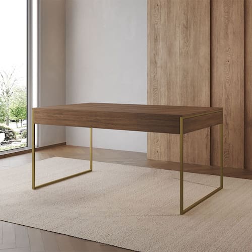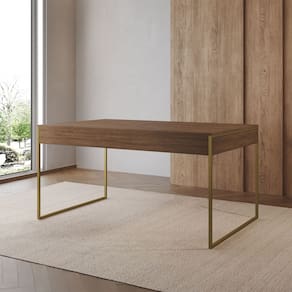 Características Tipo: Mesa de Jantar Modelo: Filadélfia Cor da Base: Dourado Cor do Tampo: Amêndoa Estrutura: Base em ferro pintado