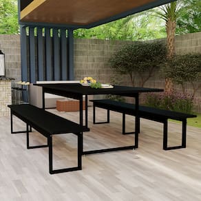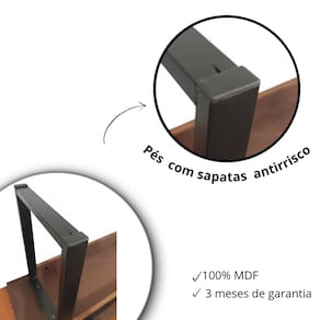 Especificações Técnicas • Formato: Retangular • Lugares: 8 pessoas • Estrutura: Ferro com pintura preta • Tampo em MDP • Bancos em MDF com sapatas antirrisco