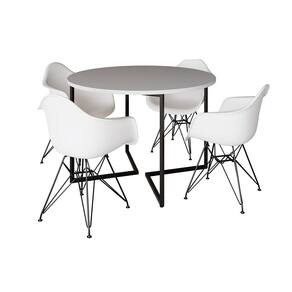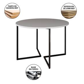 Mesa Industrial Jantar Redonda 110cm Branca Base V Com 4 Poltronas Brancas Eames Daw Ferro PretoA mesa de jantar é um dos poucos móveis que efetivamente reúne a família para saborear um bom prato ao lado das pessoas que mais ama. E para garantir que o seu ambiente fique impecável, conte com a Mesa De Jantar Industrial. As laterais vazadas, sua forma reta e sua base em V conferem sofisticação e ótimo aproveitamento no cômodo.Tipo: ConjuntoFormato: RedondaModelo: Industrial Base VCor Base: PretoCor Tampo: BrancoMedidas da Mesa:Altura: 77cmDiâmetro: 110cmInformações Poltrona:Pés base: FerroCor Assento: BrancoAltura: 80cmLargura: 38cmComprimento: 38cmATENÇÃOIMAGENS MERAMENTE ILUSTRATIVAS REALIZADO EDIÇÃO, PODENDO HAVER UMA PEQUENA VARIAÇÃO DE COR DEPENDENDO DE CADA TELA OU MONITOR.