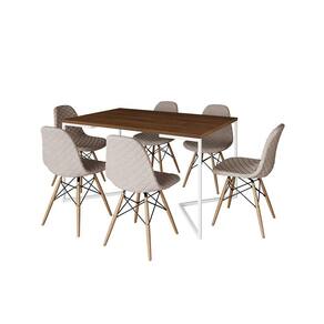 A mesa de jantar é um dos poucos móveis que efetivamente reúne a família para saborear um bom prato ao lado das pessoas que mais ama. E para garantir que o seu ambiente fique impecável, conte com a Mesa De Jantar Industrial. As laterais vazadas, sua forma reta e sua base em V conferem sofisticação e ótimo aproveitamento no cômodo.Tipo: ConjuntoModelo: Industrial Base VCor Tampo Mesa: Amêndoa Cor Base Mesa: BrancoCor Assento Cadeira: Nude claroCor base Cadeira: MadeiraMedidas da Mesa:Altura: 78cmComprimento: 90cmLargura: 137cmMedidas da Cadeira:Altura: 85cmLargura: 47cmComprimento: 37cmATENÇÃOIMAGENS MERAMENTE ILUSTRATIVAS REALIZADO EDIÇÃO, PODENDO HAVER UMA PEQUENA VARIAÇÃO DE COR DEPENDENDO DE CADA TELA OU MONITOR.