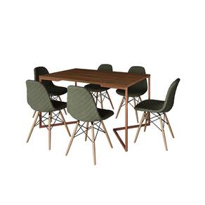 A mesa de jantar é um dos poucos móveis que efetivamente reúne a família para saborear um bom prato ao lado das pessoas que mais ama. E para garantir que o seu ambiente fique impecável, conte com a Mesa De Jantar Industrial. As laterais vazadas, sua forma reta e sua base em V conferem sofisticação e ótimo aproveitamento no cômodo.Tipo: ConjuntoModelo: Industrial Base VCor Tampo Mesa: AmêndoaCor Base Mesa: CobreCor Assento Cadeira: VerdeBase Cadeira: MadeiraMedidas da Mesa:Altura: 78cmComprimento: 90cmLargura: 137cmMedidas da Cadeira:Altura: 85cmLargura: 47cmComprimento: 37cmATENÇÃOIMAGENS MERAMENTE ILUSTRATIVAS REALIZADO EDIÇÃO, PODENDO HAVER UMA PEQUENA VARIAÇÃO DE COR DEPENDENDO DE CADA TELA OU MONITOR.