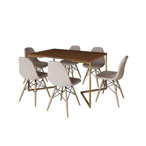 A mesa de jantar é um dos poucos móveis que efetivamente reúne a família para saborear um bom prato ao lado das pessoas que mais ama. E para garantir que o seu ambiente fique impecável, conte com a Mesa De Jantar Industrial. As laterais vazadas, sua forma reta e sua base em V conferem sofisticação e ótimo aproveitamento no cômodo.Tipo: ConjuntoModelo: Industrial Base VCor Tampo Mesa: AmêndoaCor Base Mesa: DouradoCor Assento Cadeira: Nude ClaroBase Cadeira: MadeiraMedidas da Mesa:Altura: 78cmComprimento: 90cmLargura: 137cmMedidas da Cadeira:Altura: 85cmLargura: 47cmComprimento: 37cmATENÇÃOIMAGENS MERAMENTE ILUSTRATIVAS REALIZADO EDIÇÃO, PODENDO HAVER UMA PEQUENA VARIAÇÃO DE COR DEPENDENDO DE CADA TELA OU MONITOR.