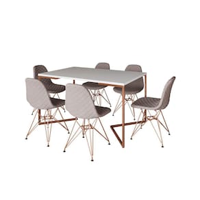 Mesa Industrial Retangular Branca Base V Cobre 137x90cm 6 Cadeiras Estofadas Nude Médio Eiffel Cobre - Branco