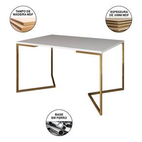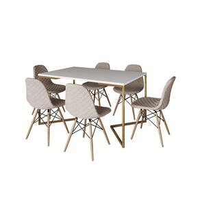 A mesa de jantar é um dos poucos móveis que efetivamente reúne a família para saborear um bom prato ao lado das pessoas que mais ama. E para garantir que o seu ambiente fique impecável, conte com a Mesa De Jantar Industrial. As laterais vazadas, sua forma reta e sua base em V conferem sofisticação e ótimo aproveitamento no cômodo.Tipo: ConjuntoModelo: Industrial Base VCor Tampo Mesa: BrancoCor Base Mesa: DouradoCor Assento Cadeira: Nude ClaroBase Cadeira: MadeiraMedidas da Mesa:Altura: 78cmComprimento: 90cmLargura: 137cmMedidas da Cadeira:Altura: 85cmLargura: 47cmComprimento: 37cmATENÇÃOIMAGENS MERAMENTE ILUSTRATIVAS REALIZADO EDIÇÃO, PODENDO HAVER UMA PEQUENA VARIAÇÃO DE COR DEPENDENDO DE CADA TELA OU MONITOR.