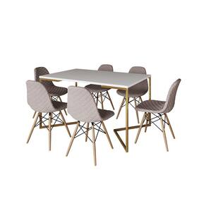 Mesa Industrial Retangular Branca Base V Dourada 137x90cm 6 Cadeiras Eames Madeira Estofadas Nude Mé - Branco