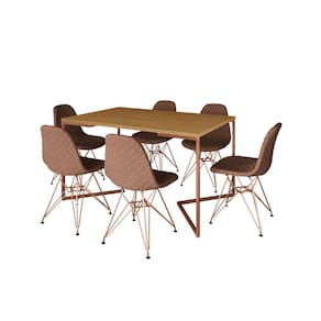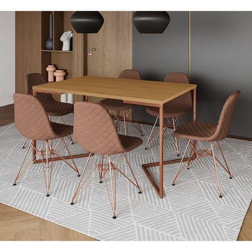 Mesa Industrial Retangular Canela Base V Cobre 137x90cm C/ 6 Cadeiras Estofadas Caramelo Cobre - Marrom