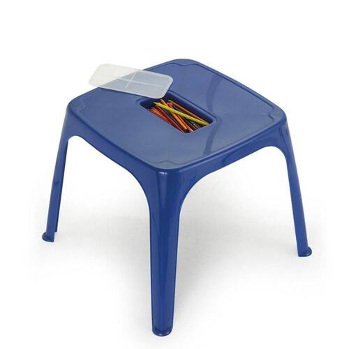 Com altura de 57 cm e formato quadrado, a mesa oferece um espaço confortável para as atividades dos pequenos.