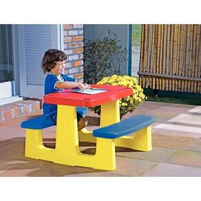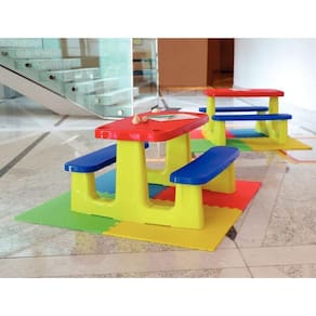 Para brincar com os amiguinhos, desenhar e comer um lanche, a mesa infantil Tramontina Pic-nic em polipropileno colorido.