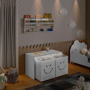 Mesa Infantil Montessoriana Com Led Alegra Emoji Com Nichos - BrancaA Mesa Infantil Alegra Smile com Nichos é a escolha ideal para montar um cantinho de brincar prático e divertido no quarto do seu pequeno. Um móvel perfeito para quartos montessoriano e brinquedotecas.Tipo: Conjunto Mesa e NichosModelo: AlegraCor: BrancoGarantia: 90 diasProduto Desmontado1 Mesa (vai com led)2 NichosNichos acompanham rodízios (rodinhas)Material 100% MDFPintura UV Verniz BrilhoObjetos não acompanha o produtoMedidas MesaAltura: 50cmLargura: 80cmComprimento: 40cmMedidas NichosAltura: 43cmLargura: 38cmComprimento: 38cmATENÇÃOIMAGENS MERAMENTE ILUSTRATIVAS REALIZADO EDIÇÃO, PODENDO HAVER UMA PEQUENA VARIAÇÃO DE COR DEPENDENDO DE CADA TELA OU MONITOR.Mesa Infantil Montessoriana com Led Alegra Smile com Nichos - Branca