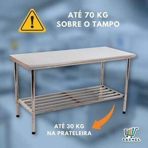 Peso máximo suportado (tampo): 70 kg distribuídos