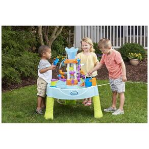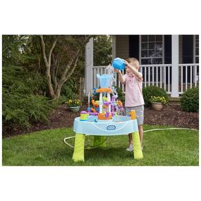 A mesa de água divertida do Little Tikes flui permite que várias crianças brinquem ao mesmo tempo Despeje água na torre central para criar uma cachoeira divertida e em cascata Inclui 13 tubos intercambiáveis, acessórios, torneiras, colher, balde e barco Conecte se a uma mangueira de jardim padrão ou despeje água na torre central, para criar diversão sem fim Marca: Não Informado