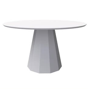 A Mesa Isis possuí uma moderna base 100% em MDF, pés niveladores anti umidade, tampo redondo com vidro 3mm laqueado e colado sobre MDF.