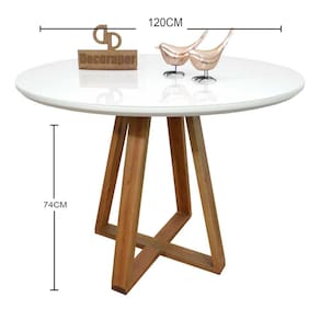 Mesa Jantar Base X Tampo Redondo Laca Com Vidro 120cm Branco