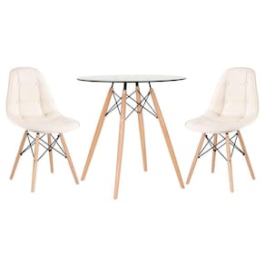 • 1 - Mesa jantar cozinha redonda com tampo de vidro Eames 70 cm 2 - Cadeiras Eiffel Botonê